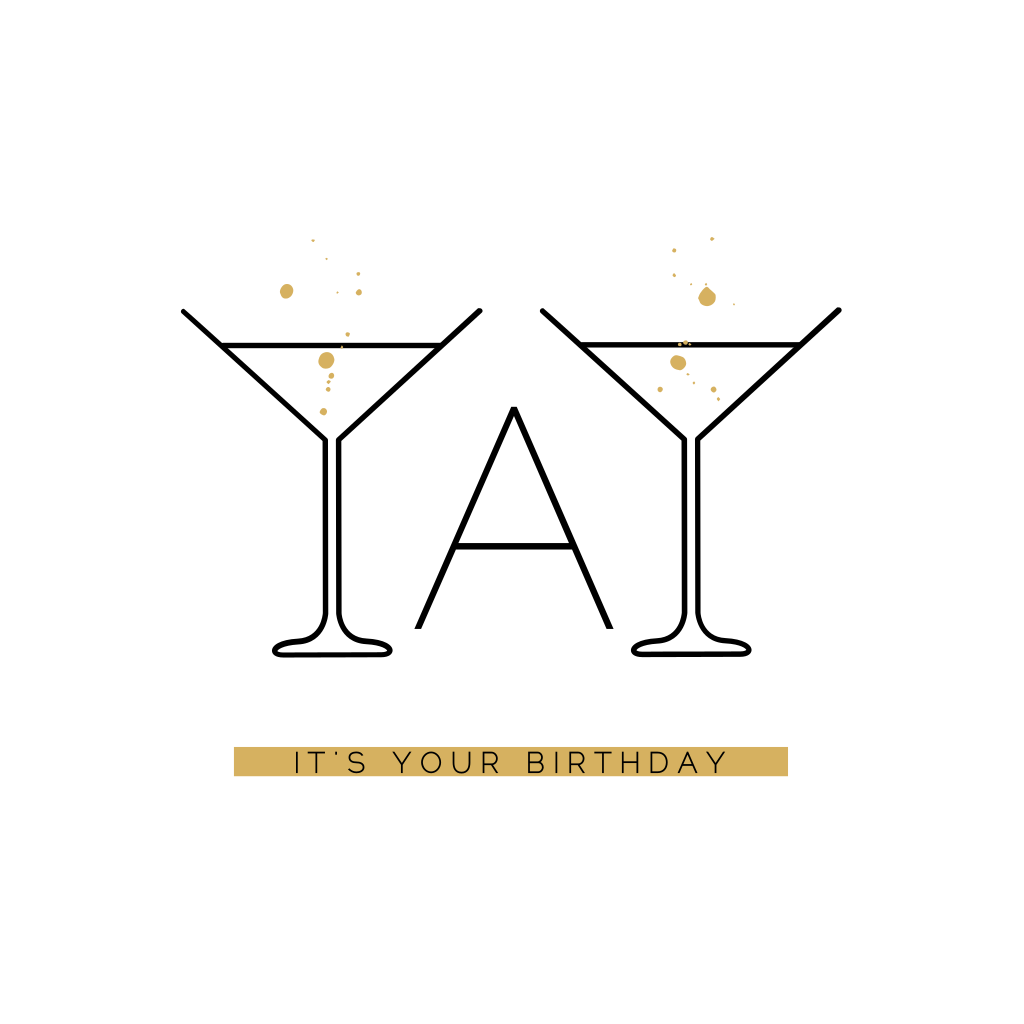 Verjaardagskaartje met cocktails en goud