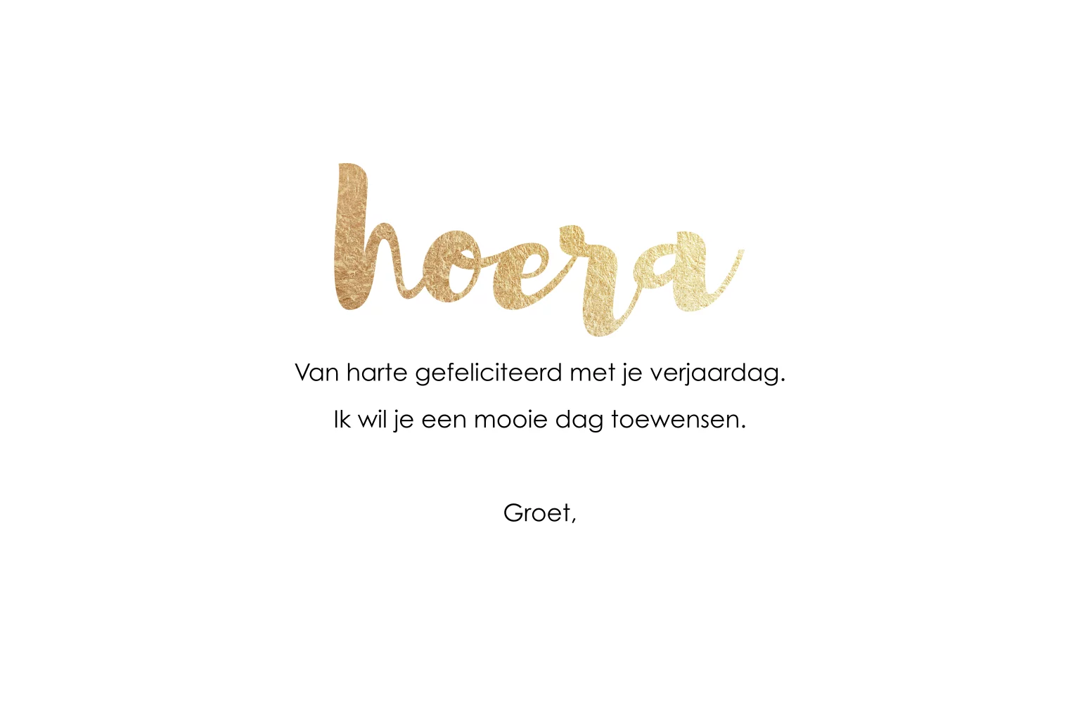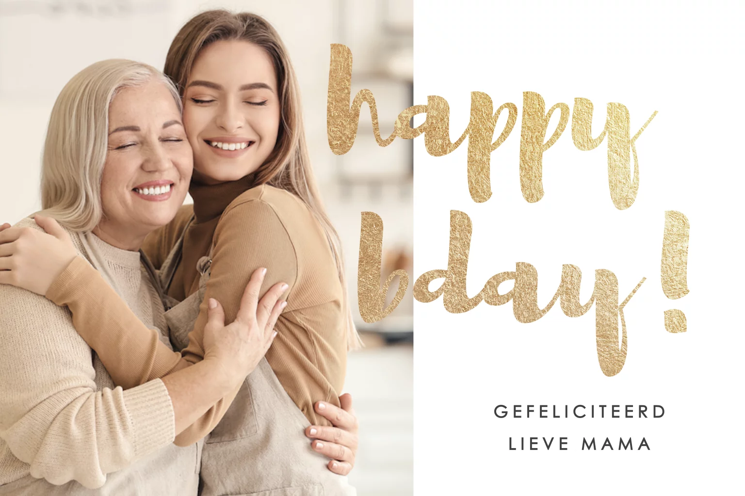 Verjaardagskaart voor vrouw met foto en gouden felicitatie