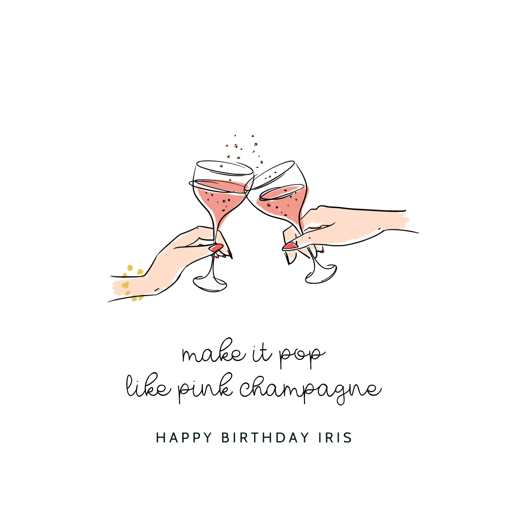 Verjaardagskaart voor vrouw met illustratie roze champagne