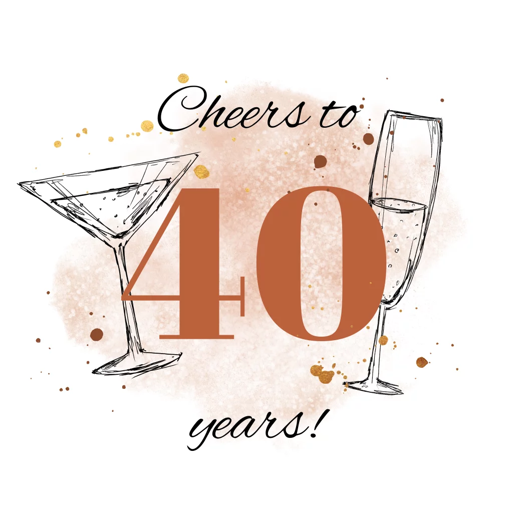 Wenskaart verjaardag vrouw 40 jaar met champagne en cocktailglazen