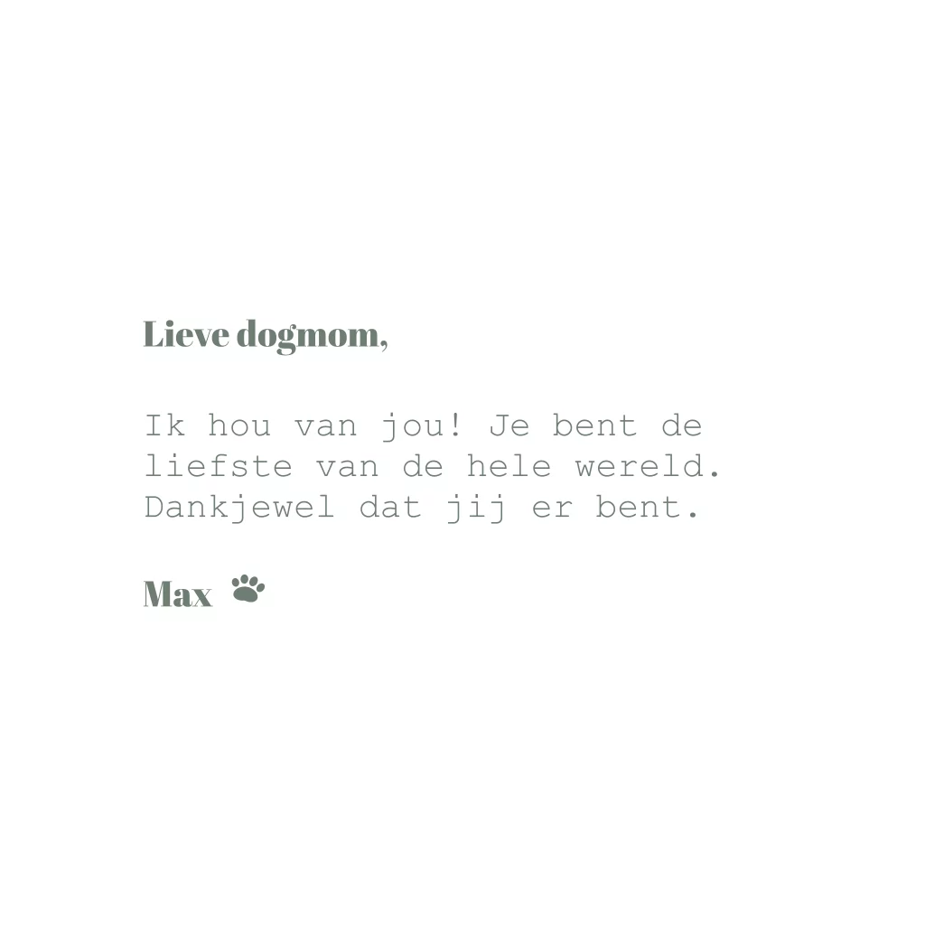 Verras dé dogmom uit jouw omgeving met een kaartje vanuit de hond, op Moederdag. Dit gaat ze super leuk vinden!