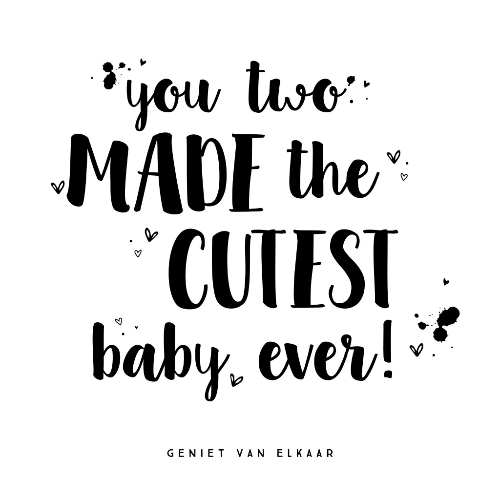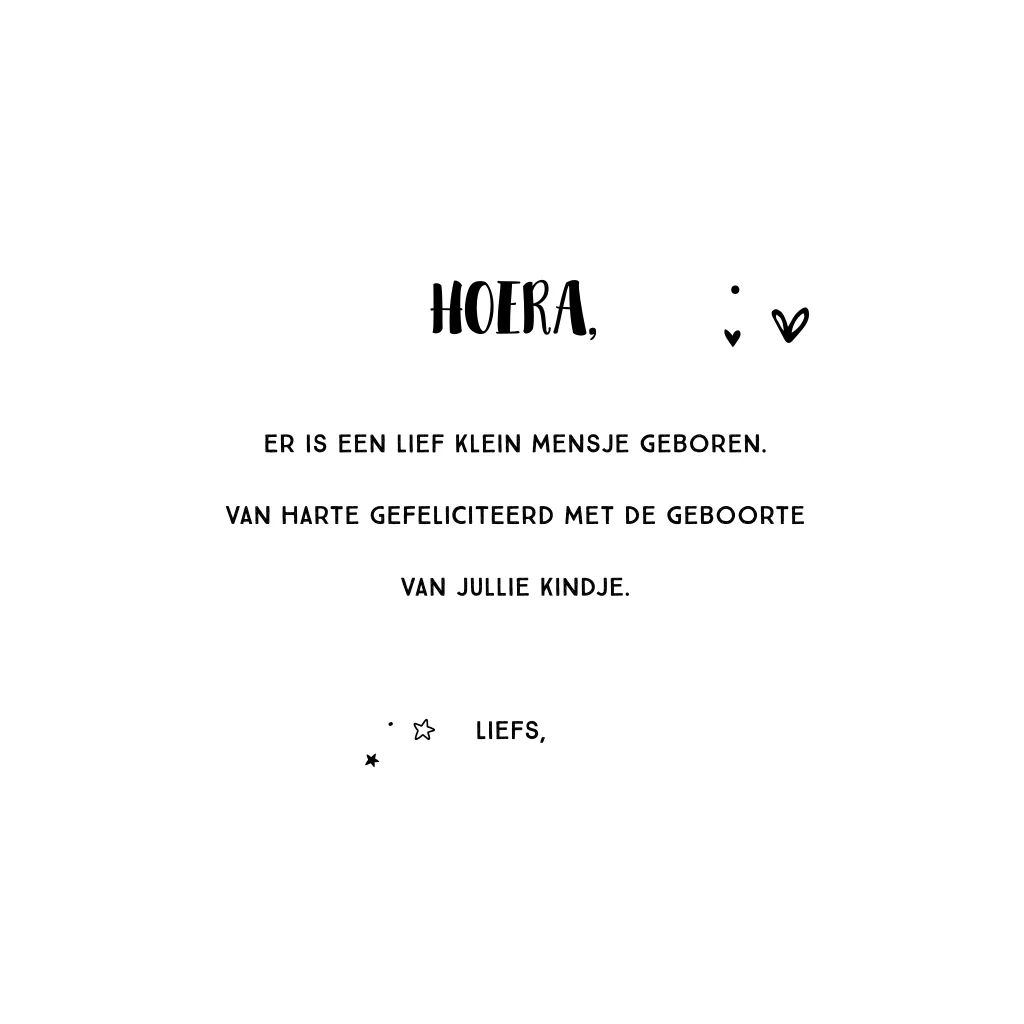 Felicitatiekaartje met tekst in handlettering-stijl voor de geboorte van een baby. De getekende hartjes maken het een extra schattig kaartje.