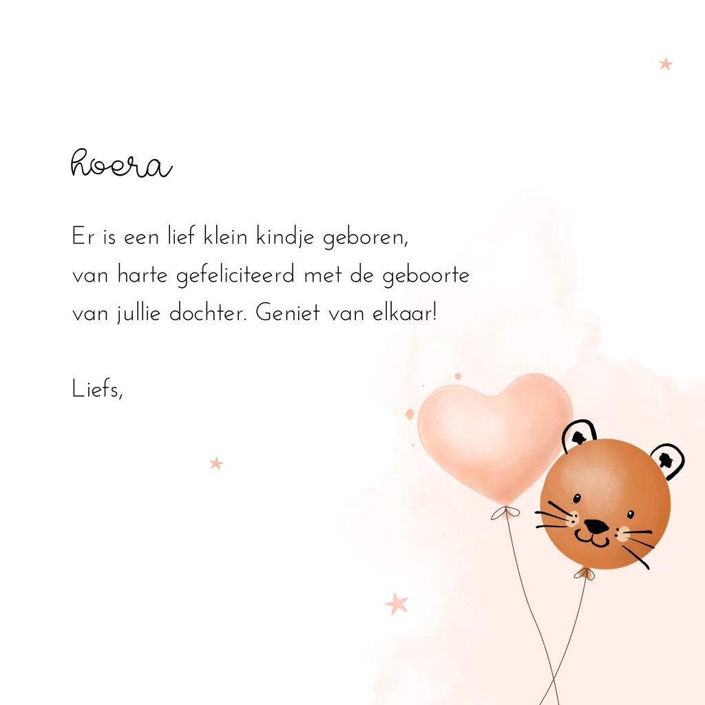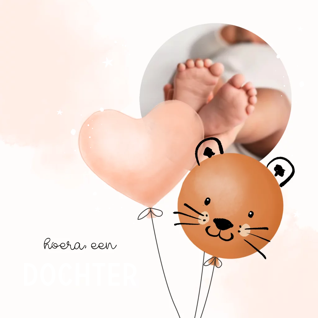 Super lieve wenskaart om de geboorte te vieren van een lief klein meisje. Wist je dat het zelfs mogelijk is de schattige voetjesfoto te vervangen door een foto van de pasgeborene? Maak de wenskaart op deze manier in een handomdraai super persoonlijk. Er is tevens gebruik gemaakt van rosefolie op deze kaart, dat zorgt voor een extra luxe uitstraling.