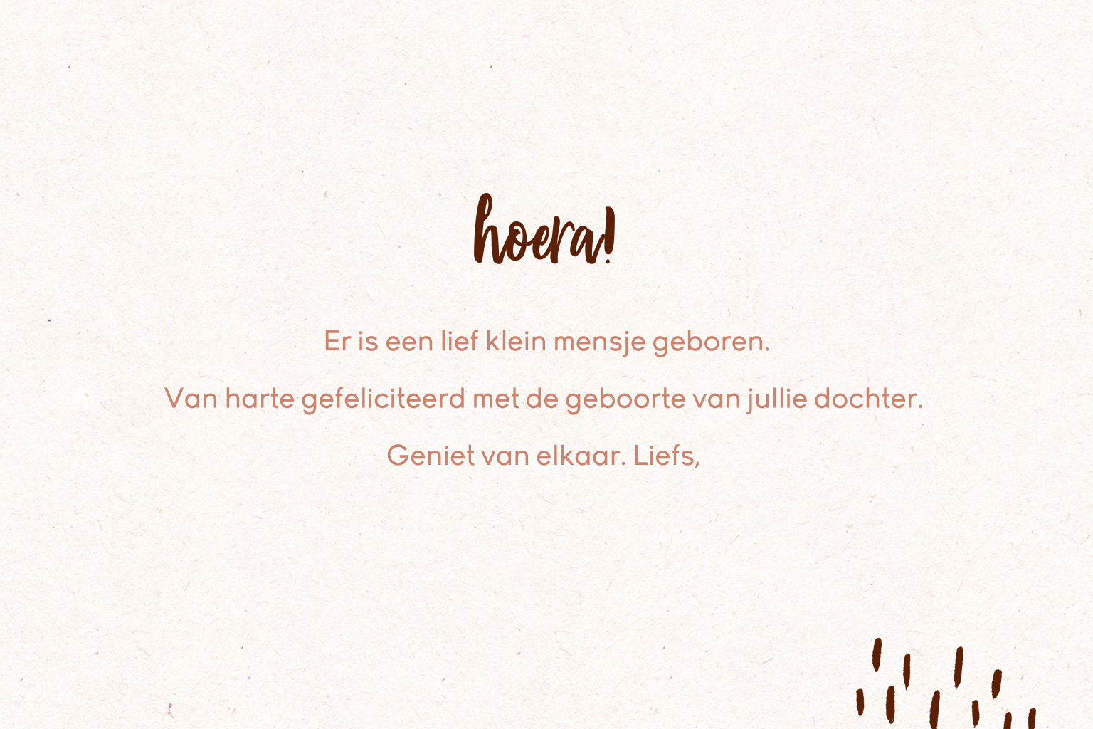 Feliciteer de kersverse mama en papa met een super hippe wenskaart. De roestkleurige ornamenten maken het kaartje helemaal af.