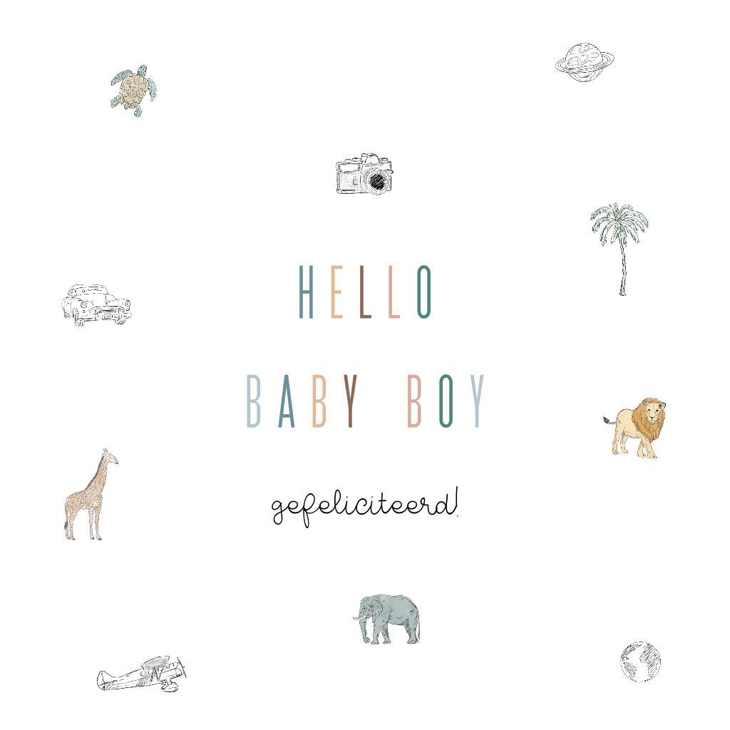 Feliciteer vrienden of familie met de geboorte van hun zoon met deze mooie wenskaart vol vrolijke jungle illustraties. Wist je dat op deze wenskaart ook gebruik gemaakt wordt van echt zilverfolie? Dat geeft de kaart een extra luxe uitstraling.