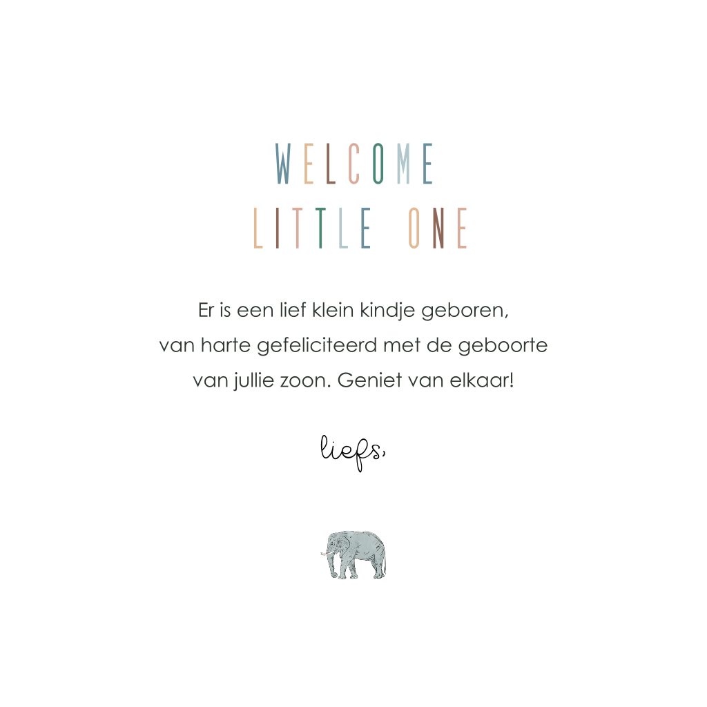 Wenskaart geboorte zoon met jungle illustraties en zilverfolie