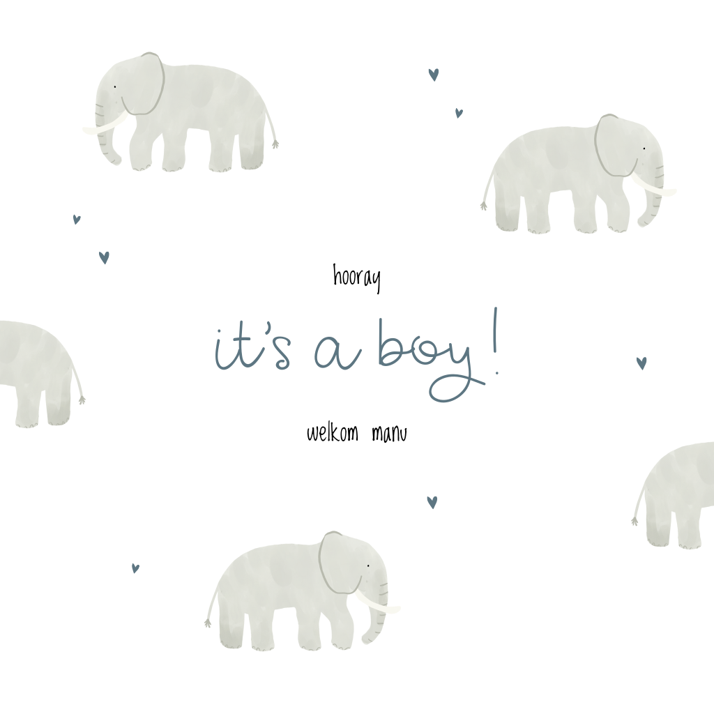 Wenskaart geboorte zoon olifantjes