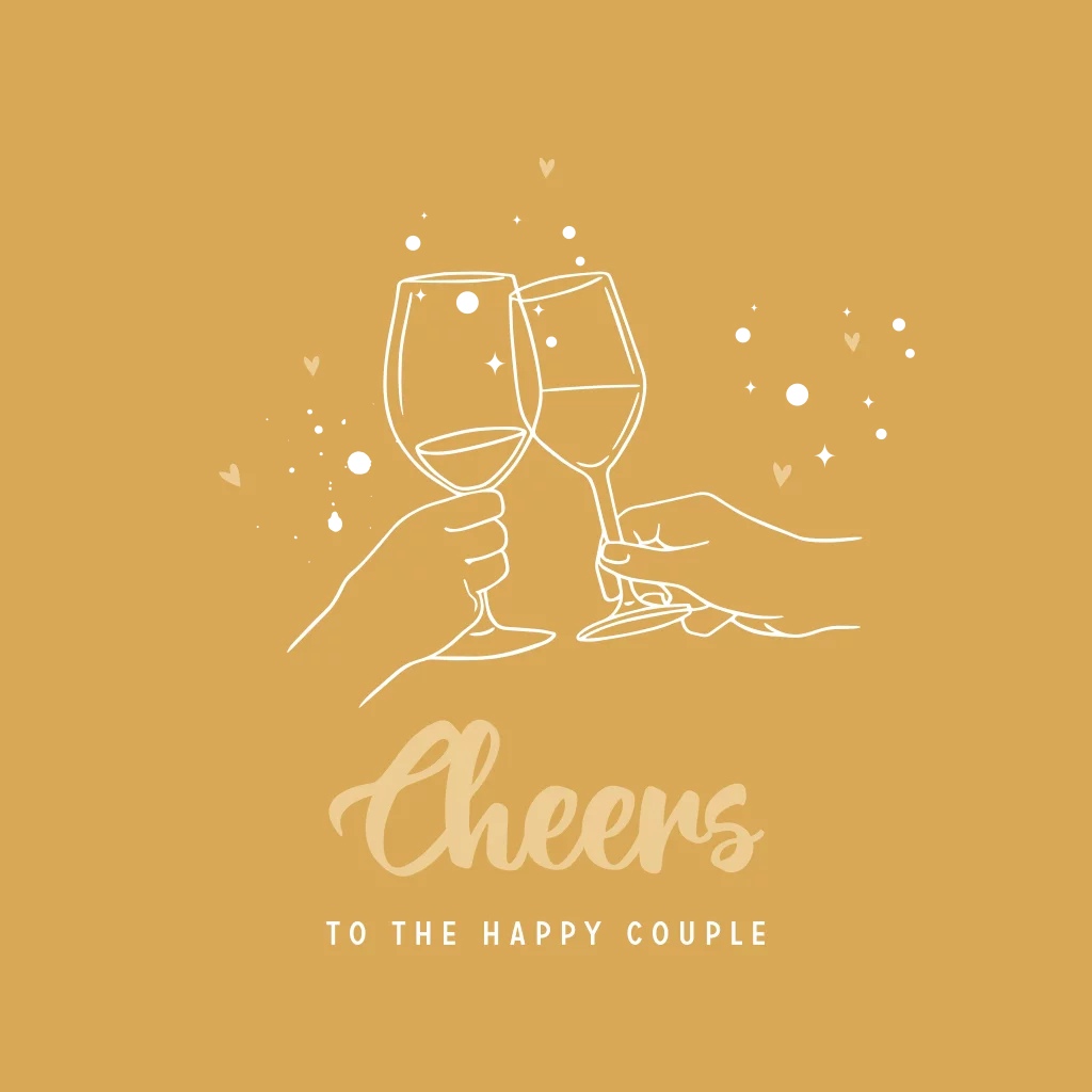 Vrolijke felicitatiekaart voor huwelijk proost in okergeel