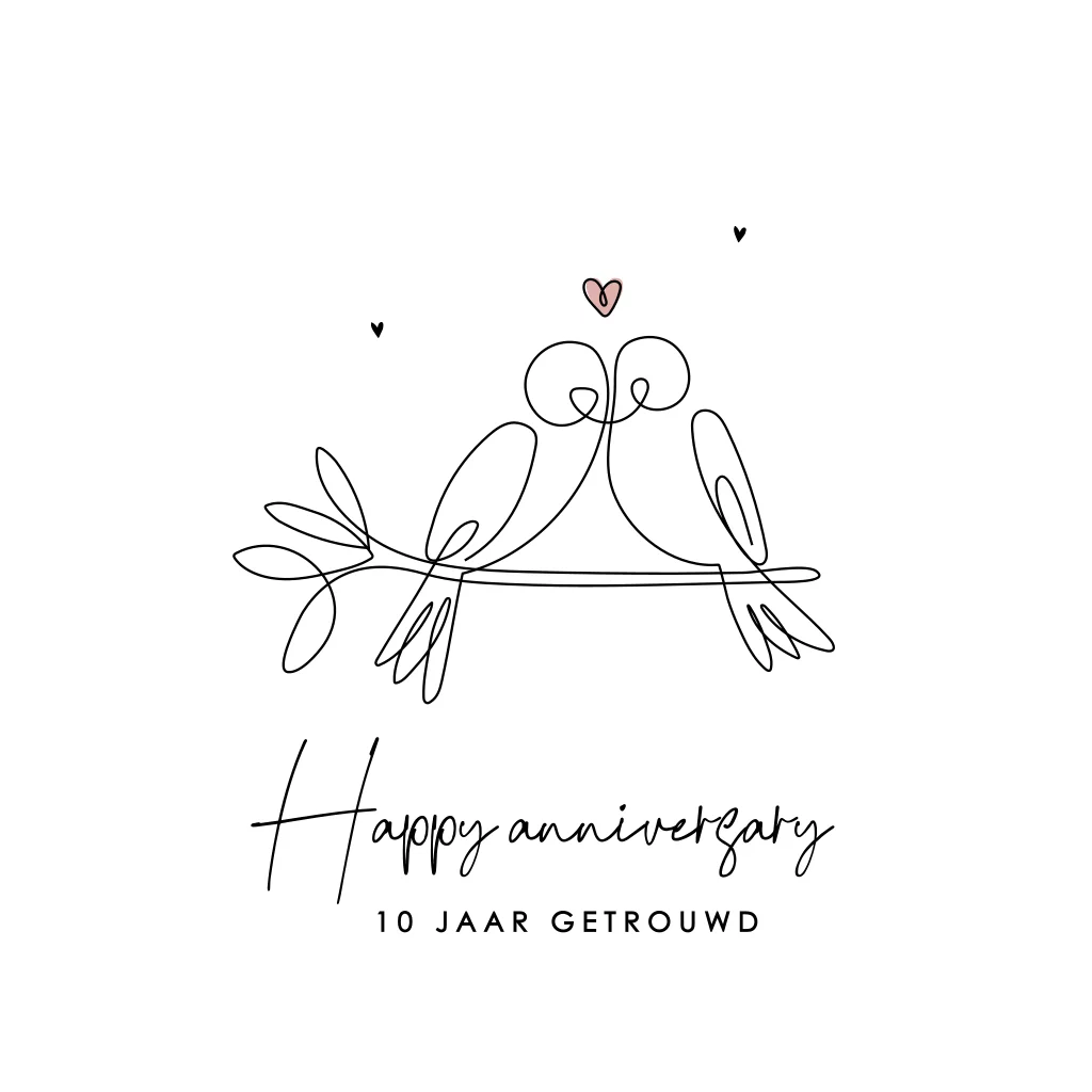 Stijlvolle wenskaart met illustratie om een stel te feliciteren met hun huwelijksjubileum.