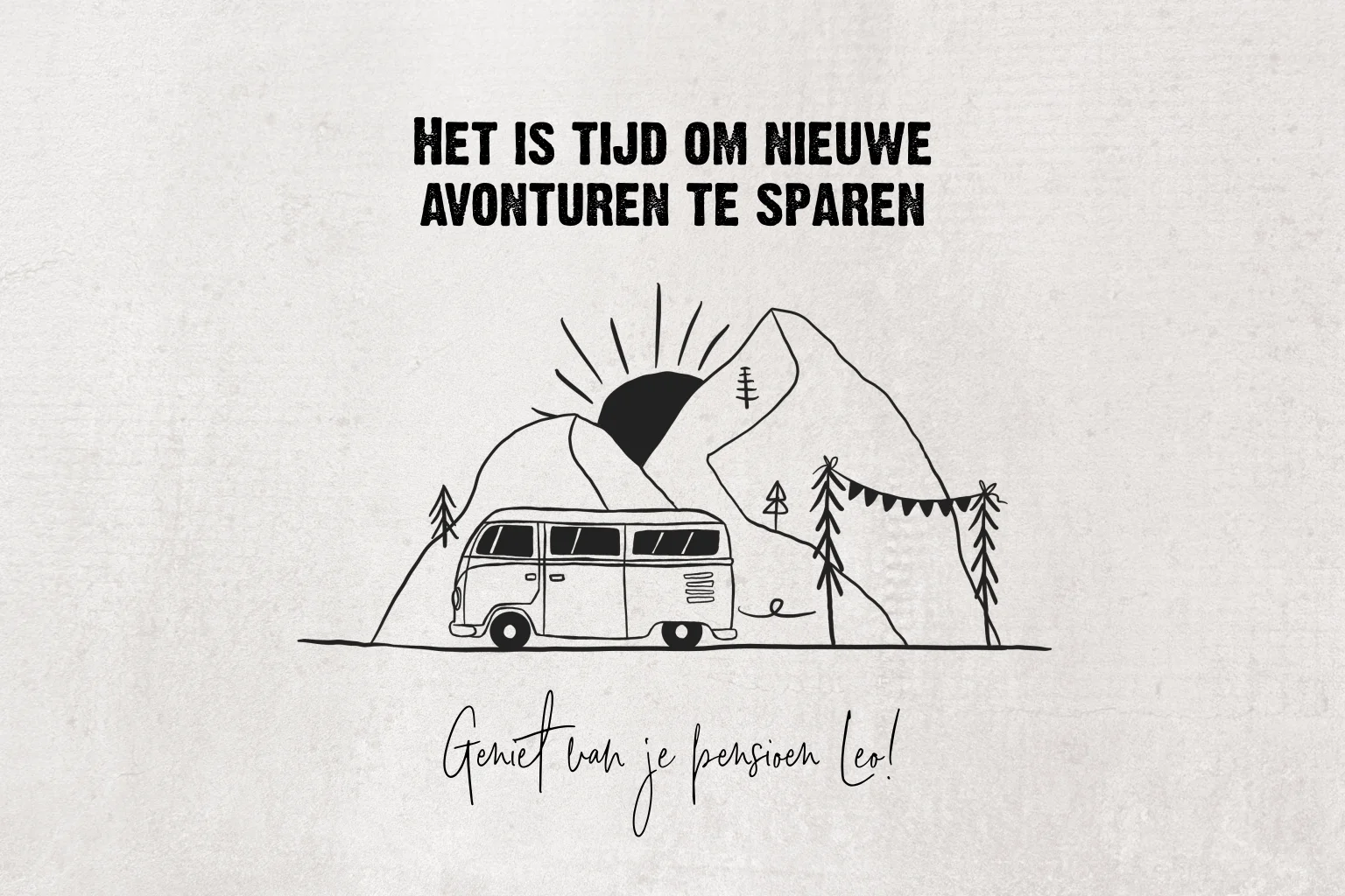 Wens iemand persoonlijk een fijne start van het pensioen. Tijd genoeg om te gaan reizen en nieuwe avonturen te sparen.