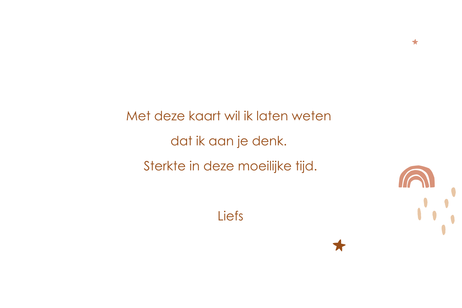 Stijlvolle wenskaart met regenboogjes om iemand sterkte te wensen.