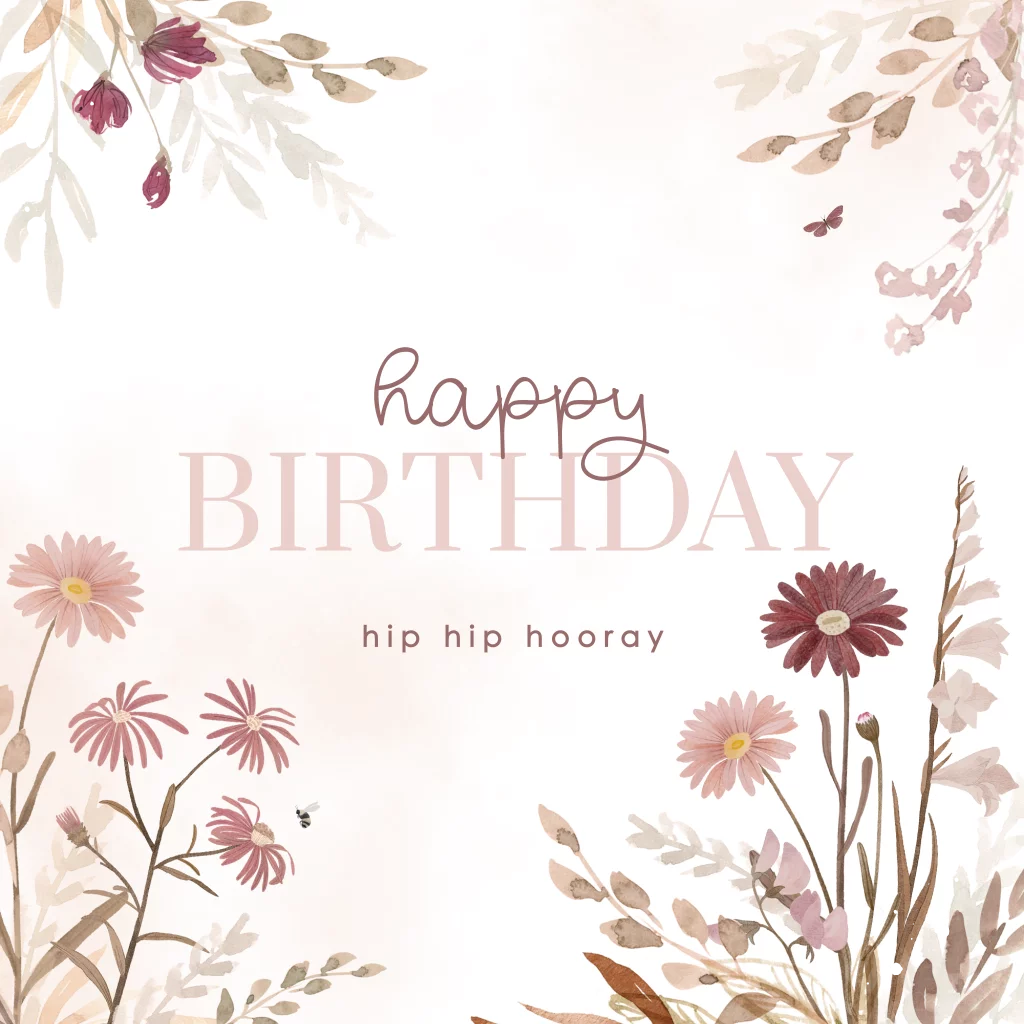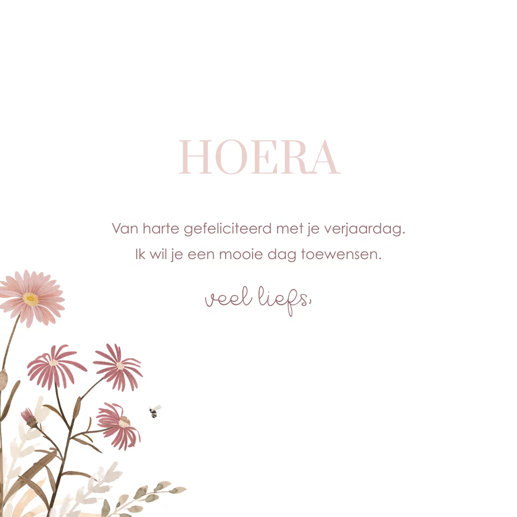 Super lief kaartje om iemand een fijne verjaardag te wensen! De handgeschilderde bloemen in oudroze tinten op zowel de voor- als binnenkant maken de kaart extra speciaal.