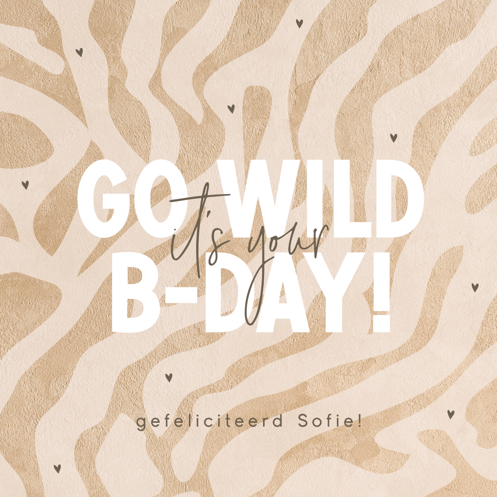 Hoe tof is deze hippe wenskaart? Helemaal in een jasje van nu! Een mooie combinatie van zebraprint en velvet-look.