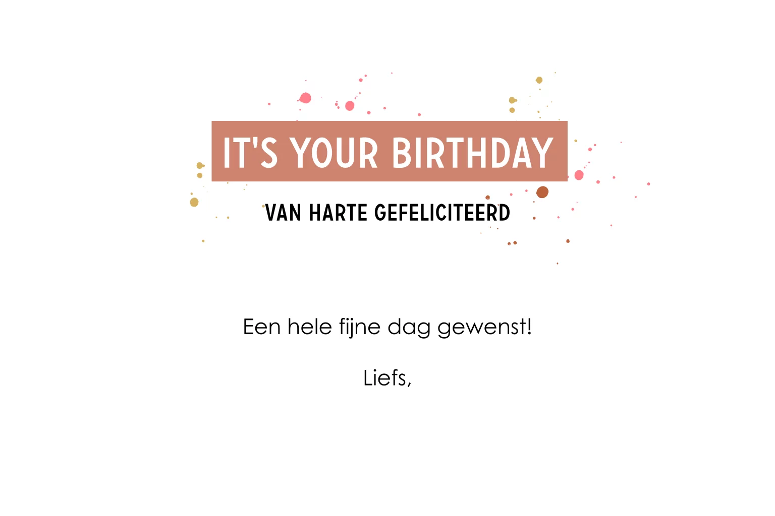 Super vrolijk verjaardagskaartje, speciaal voor een vrolijke jarige. Wens diegene een mooie dag met dit hippe kaartje. Wist je dat je gemakkelijk de tekst kan aanpassen aan de binnen- en voorzijde? Zo maak je het kaartje extra persoonlijk.