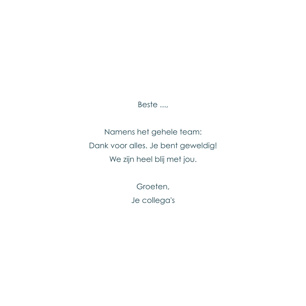 Eenvoudige maar vrolijke wenskaart om een collega te complimenteren. Het emoji duimpje zorgt voor een leuke funfactor binnen deze kaart.