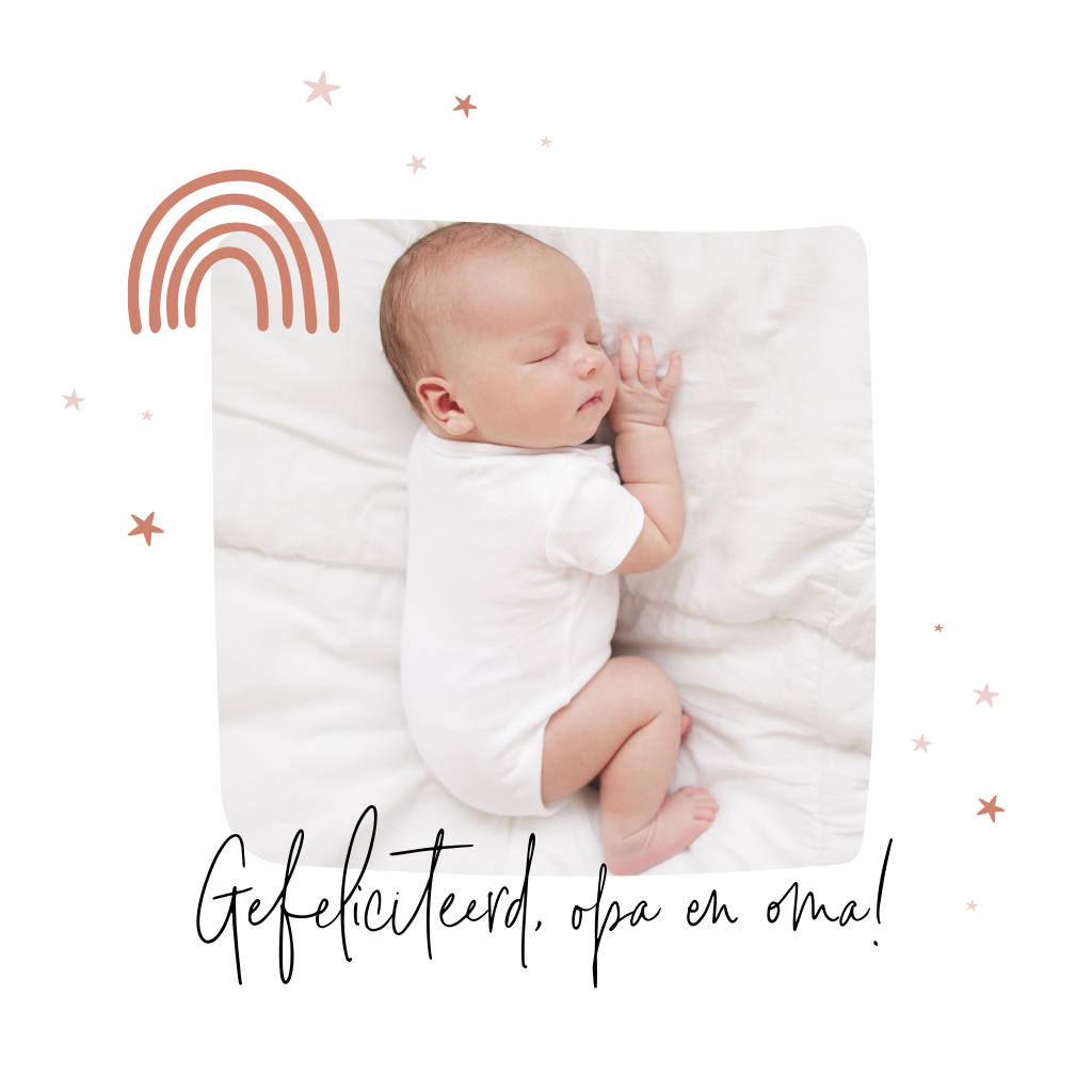 Stuur de gelukkige opa en oma deze unieke wenskaart om ze te feliciteren. Maak de wenskaart extra speciaal door er een lieve foto aan toe te voegen.