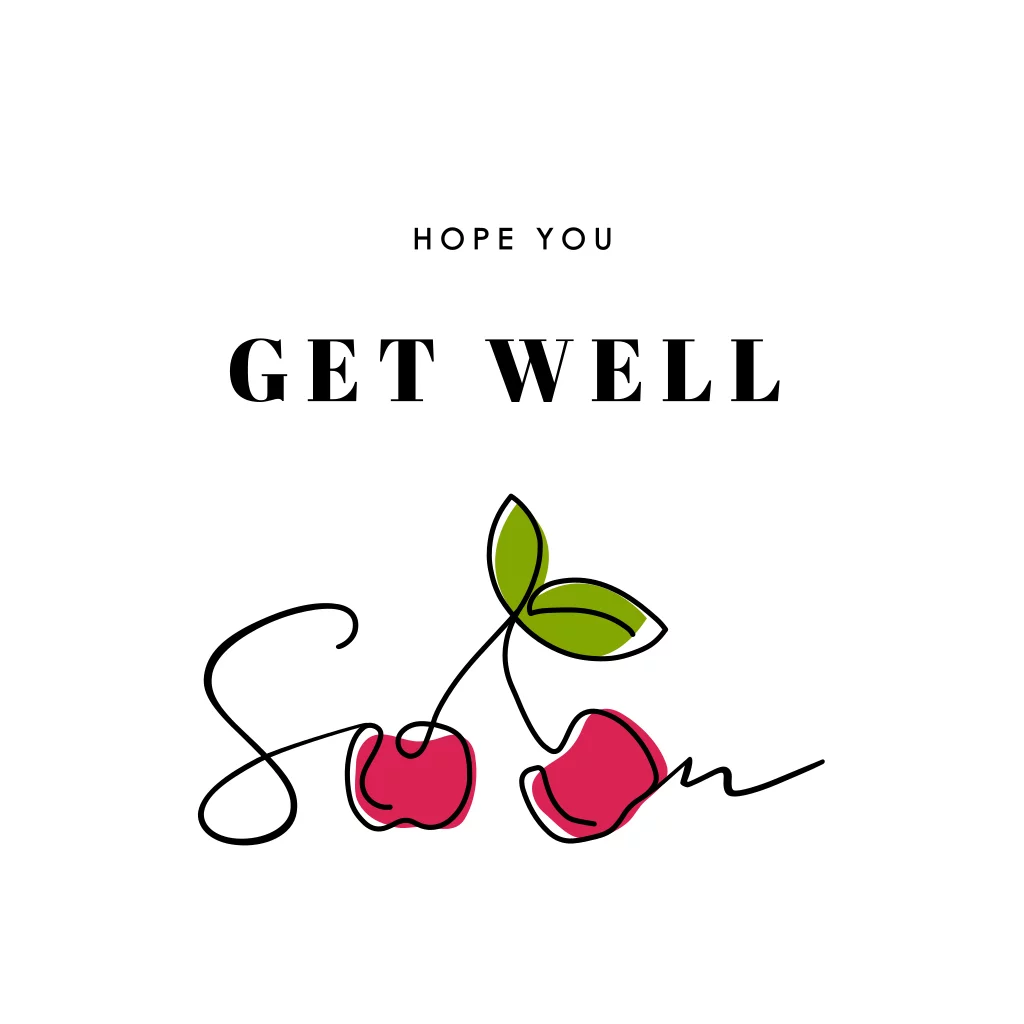 Wens iemand beterschap met deze stijlvolle kaart met kersjes.