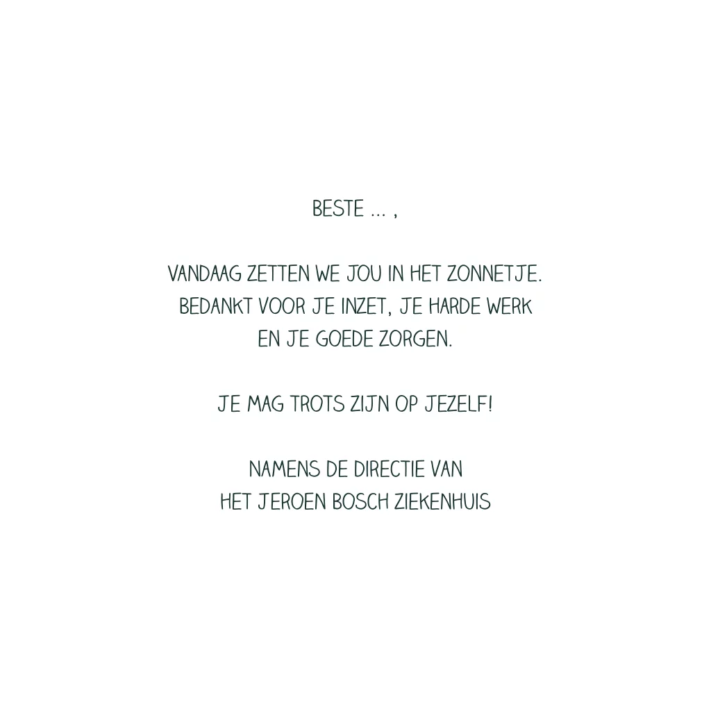 12 mei is het internationale dag van de verpleging. Op deze dag worden verpleegkundigen in het zonnetje gezet. Werk jij bij een ziekenhuis of andere zorginstelling? Stuur jouw collega's of werknemers een kaartje!