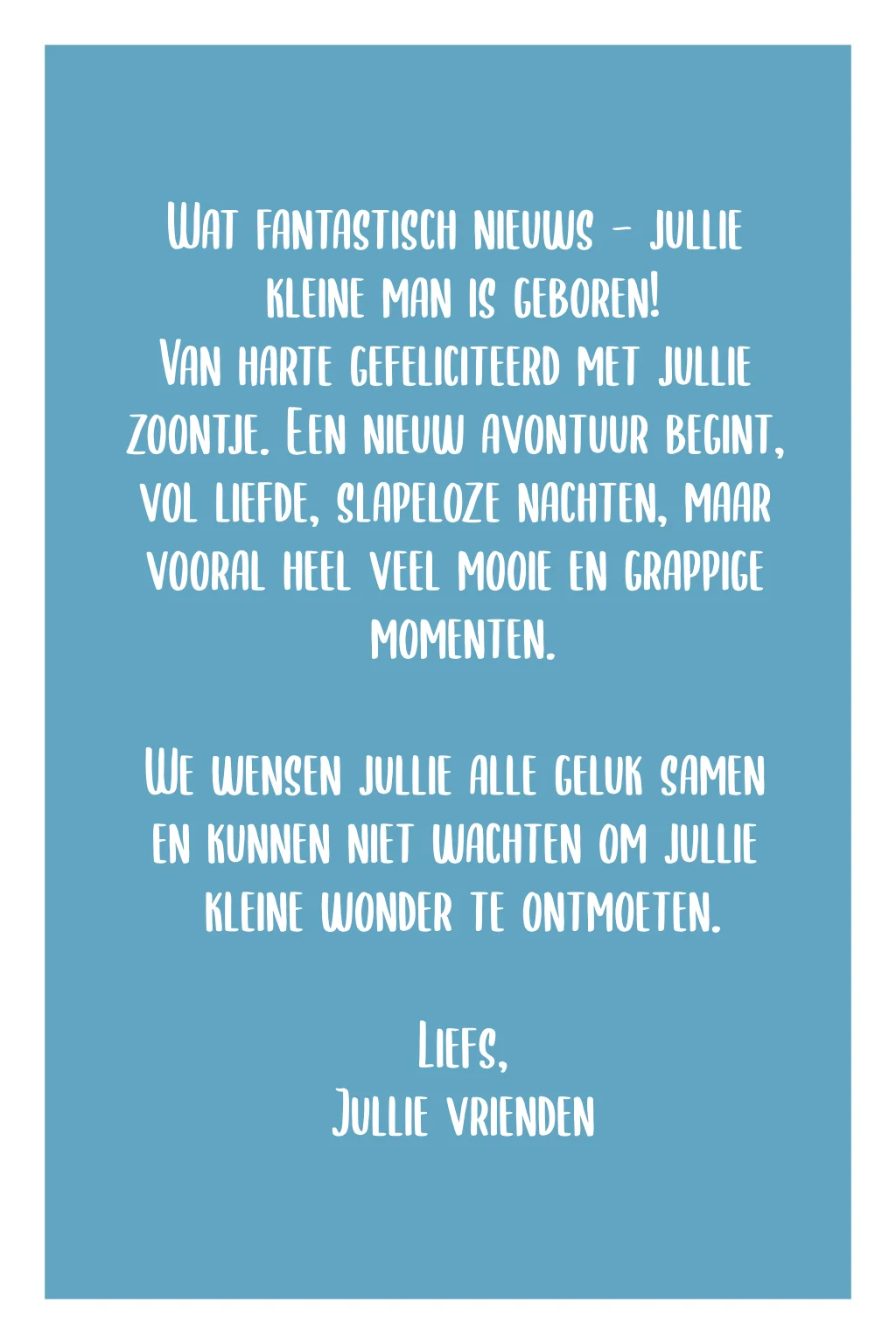 Baby felicitatiekaart in helderblauw met persoonlijke tekst