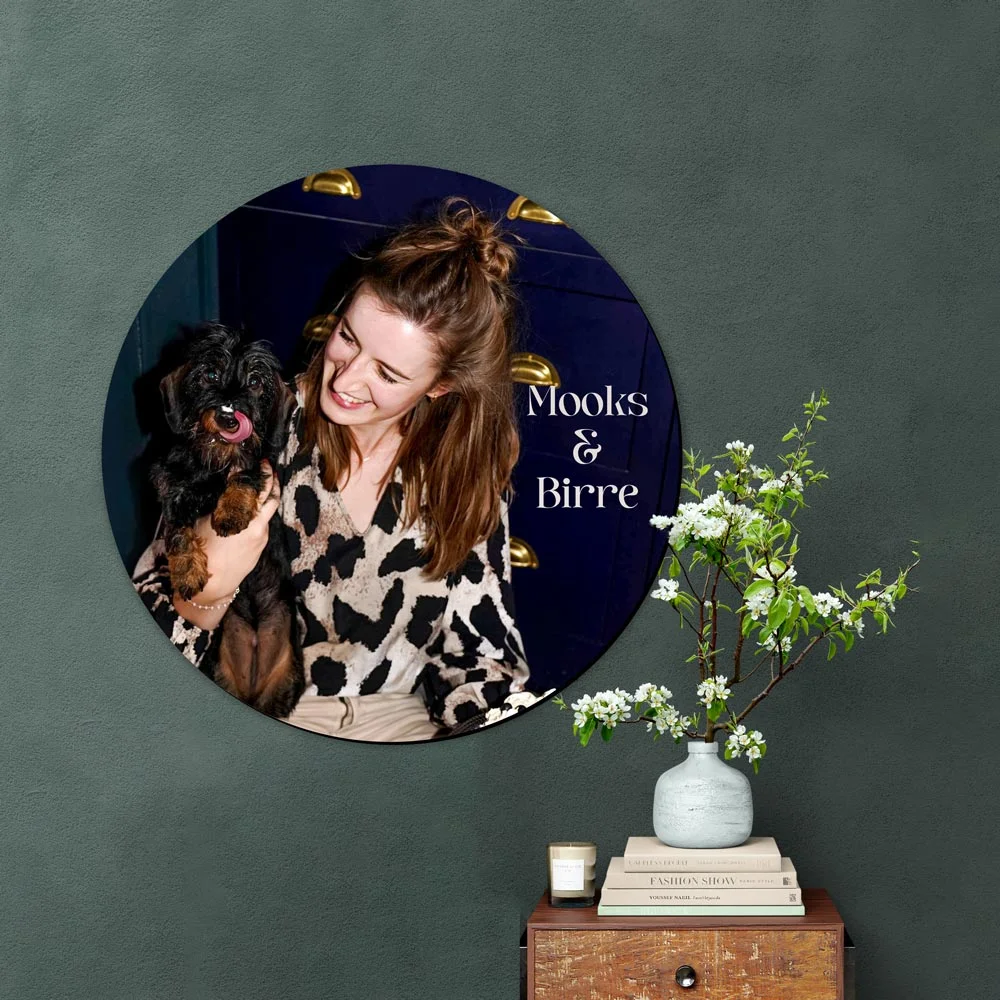 Ontwerp een unieke muurcirkel met persoonlijke foto, zoals deze met je lieve huisdier. Zo maak je een kamer helemaal af! Bewerk het design gemakkelijk in onze editor, op een formaat en materiaal naar keuze.