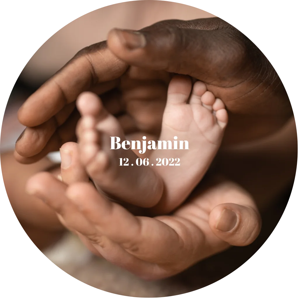 Ontwerp een unieke muurcirkel met persoonlijke foto, zoals deze met jullie kleintje. Zo maak je een kamer helemaal af! Bewerk het design gemakkelijk in onze editor, op een formaat en materiaal naar keuze.