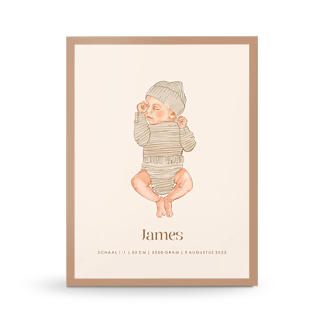 Een geboorteposter op schaal 1:1 om voor altijd vast te leggen hoe klein jouw baby was op het moment van de geboorte.