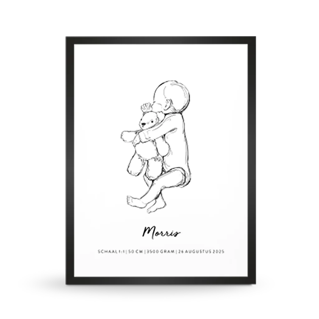 Een geboorteposter op schaal 1:1 om voor altijd vast te leggen hoe klein jouw baby was op het moment van de geboorte.