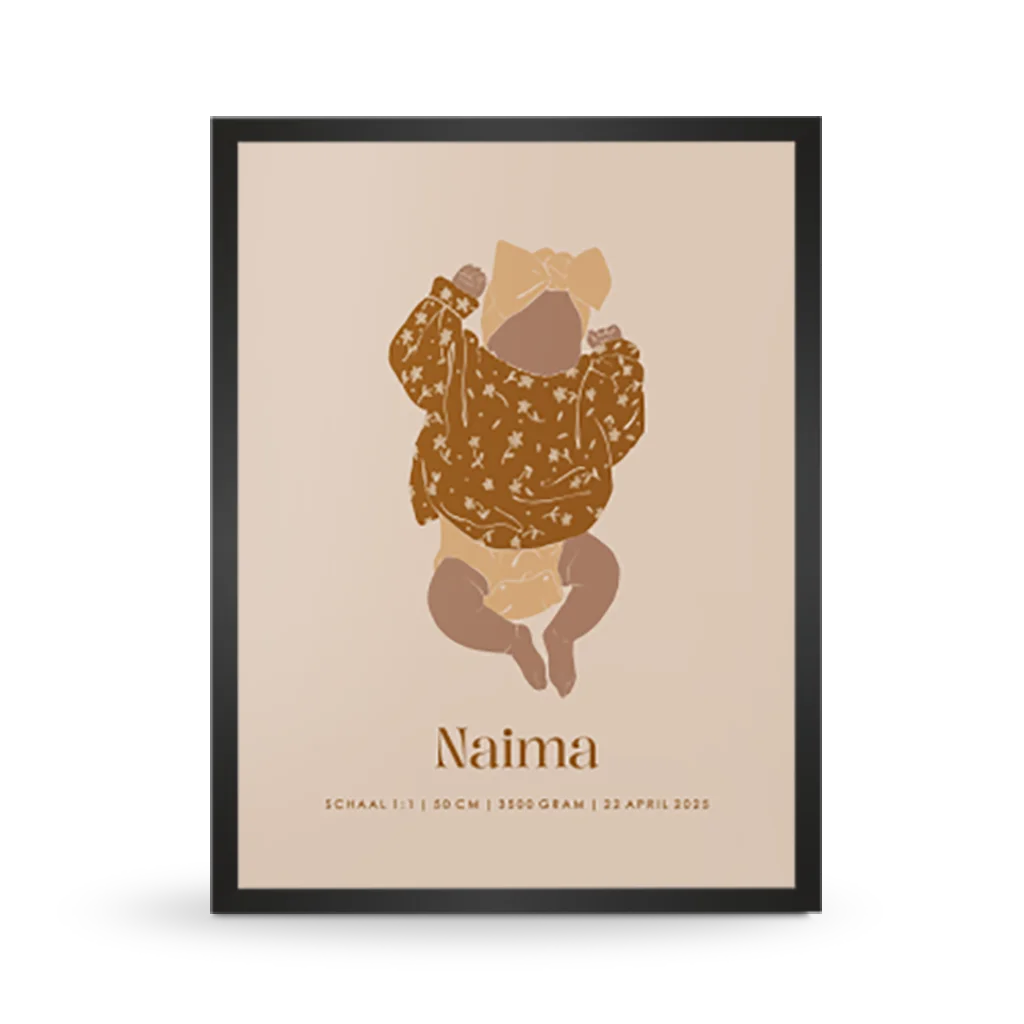 Een geboorteposter op schaal 1:1 om voor altijd vast te leggen hoe klein jouw baby was op het moment van de geboorte.