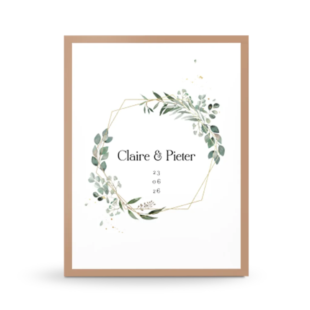 Huwelijksposter botanisch met gouden geometrische vorm