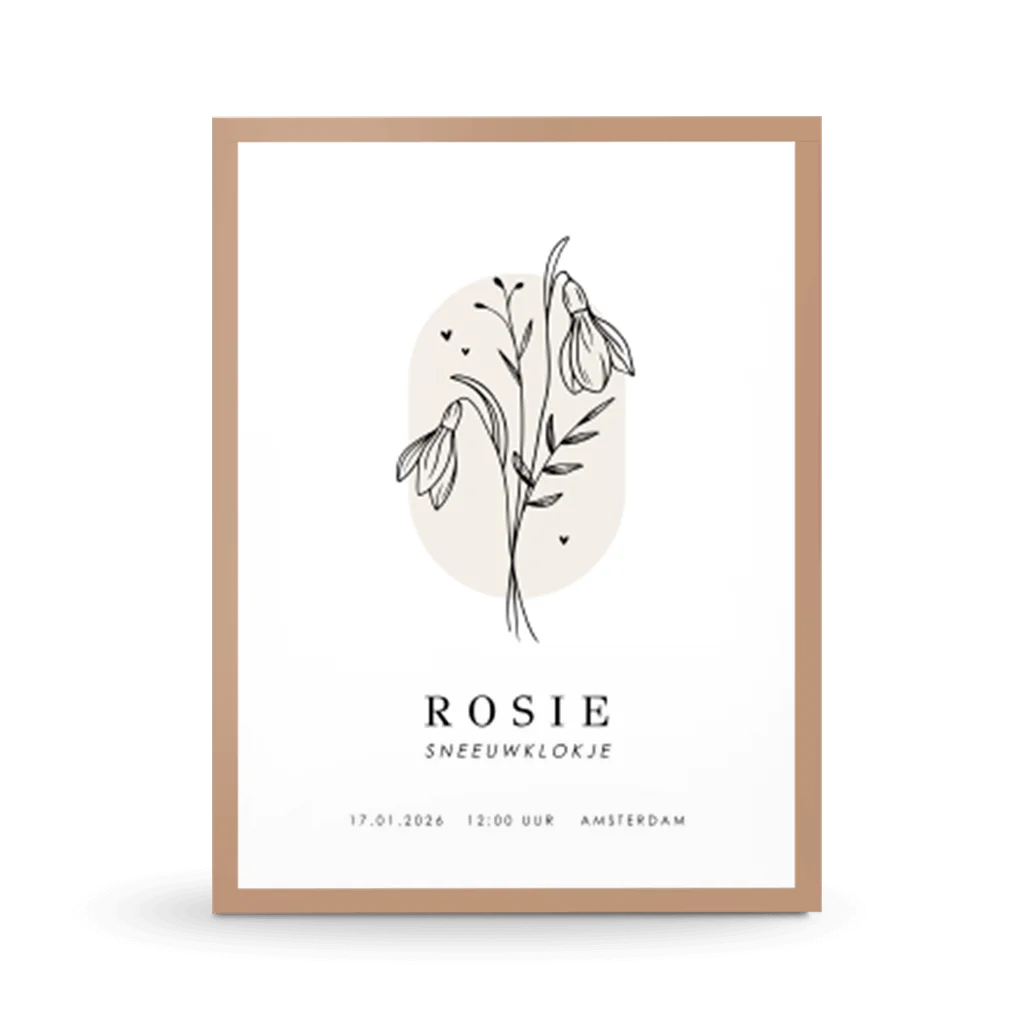 Een geboorteposter met de geboortebloem die hoort bij de maand waarin jullie wondertje is geboren, is ontzettend origineel! Pas de bloemen gemakkelijk aan in de editor. Hulp nodig met aanpassen? We helpen graag!
