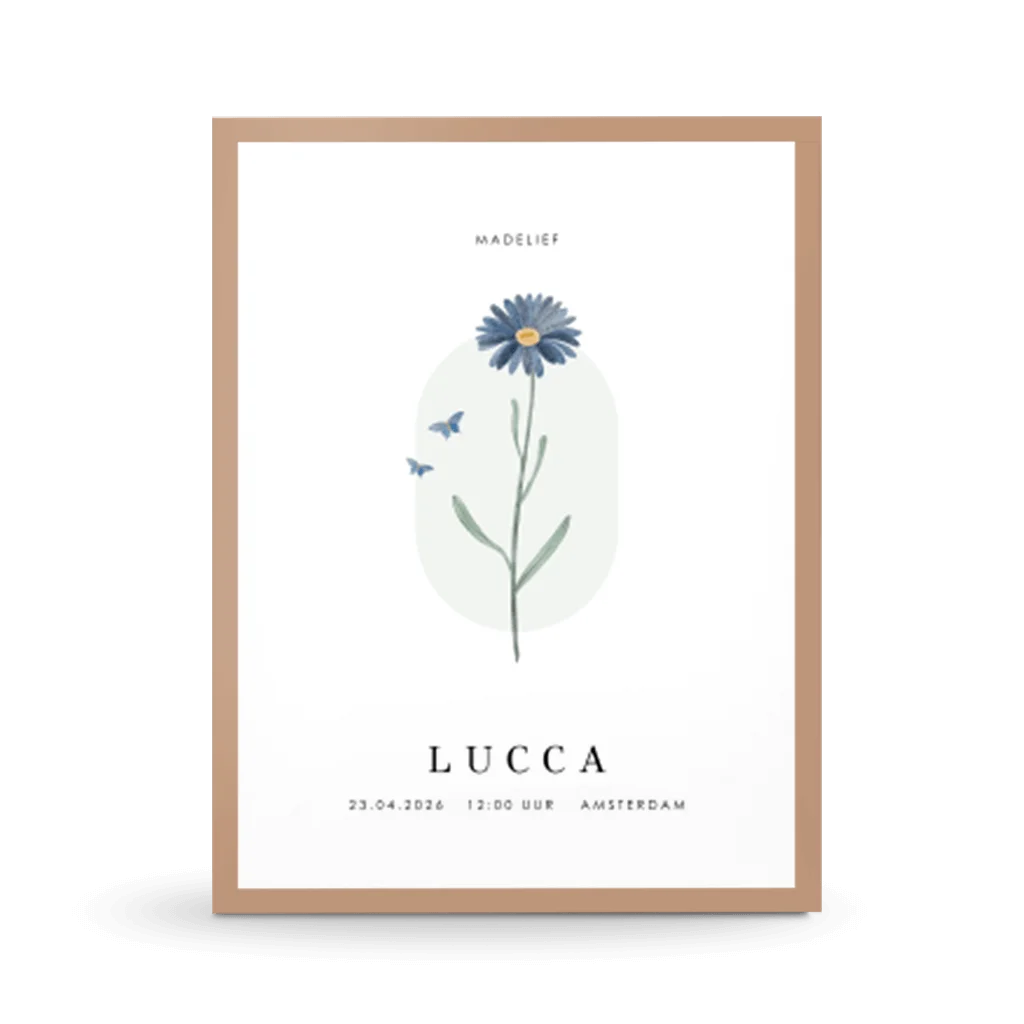 Geboorteposter met de geboortebloem van april: de madelief.