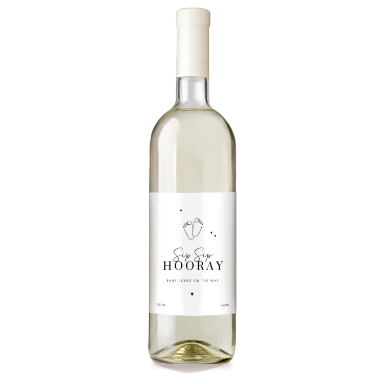 Een originele zwangerschapsaankondiging in de vorm van een etiket voor op een wijnfles. Pas dit etiket gemakkelijk aan naar jullie smaak in de editor. Voeg eventueel tekst en andere elementen - ook in goudfolie - toe. Zo maak je het wijnetiket helemaal eigen.Bij Made for Moments kun je jouw zakelijke geschenk helemaal naar wens samenstellen en personaliseren, precies zoals jij het wilt. Heb je interesse om meer dan 10 stuks van een kado te bestellen? Vraag dan een offerte aan en wij nemen spoedig contact met je op.