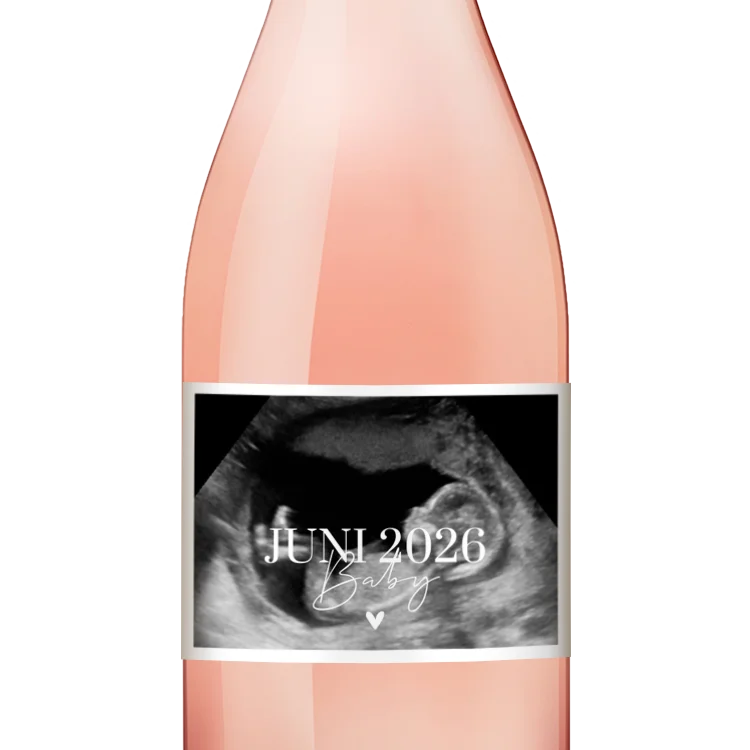 Wijnetiket met echo foto voor zwangerschapsaankondiging - per 5 stuks