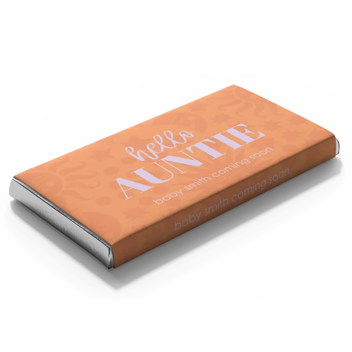 Is er een baby op komst en ben je op zoek naar een originele zwangerschapsaankondiging? Verras de soon to be tante met deze zonnige gepersonaliseerde chocoladereep wikkel! Je kunt de wikkel naar wens aanpassen in de online editor.